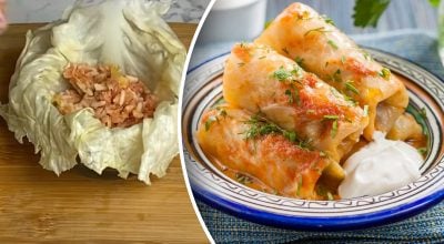 Hogyan kell a töltött káposztát káposztalevélbe csomagolni egy tányér segítségével. Link másolva A töltött káposzta legegyszerűbb csomagolása / Kollázs